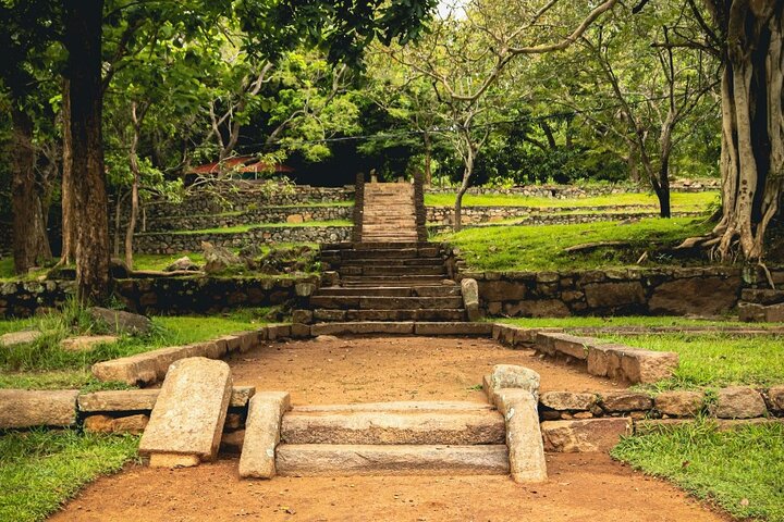 Your adventure begins at the Jaya Sri Maha Bodhi Tree, the oldest living tree in the world with a recorded history of over 2,000 years. Planted from a cutting of the sacred Bodhi tree in India, it continues to attract worshippers and pilgrims who gather to offer flowers and prayers. From here, your driver-guide will take you along less-traveled backroads, where you’ll discover quiet monasteries, crumbling stone walls, and hidden ruins that many visitors overlook.